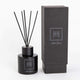 Diffuser i en vakker flakong av sort glass med sorte duftpinner. Designet av Halvor Bakke og produsert av Lama Interiør.