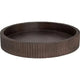 Rundt serveringsbrett i brunt tre med rillekant. Også flott å bruke til å samle dekor.