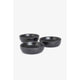 Sett med tre små, sorte treskåler med bølgete kant. Designet av Halvor Bakke.