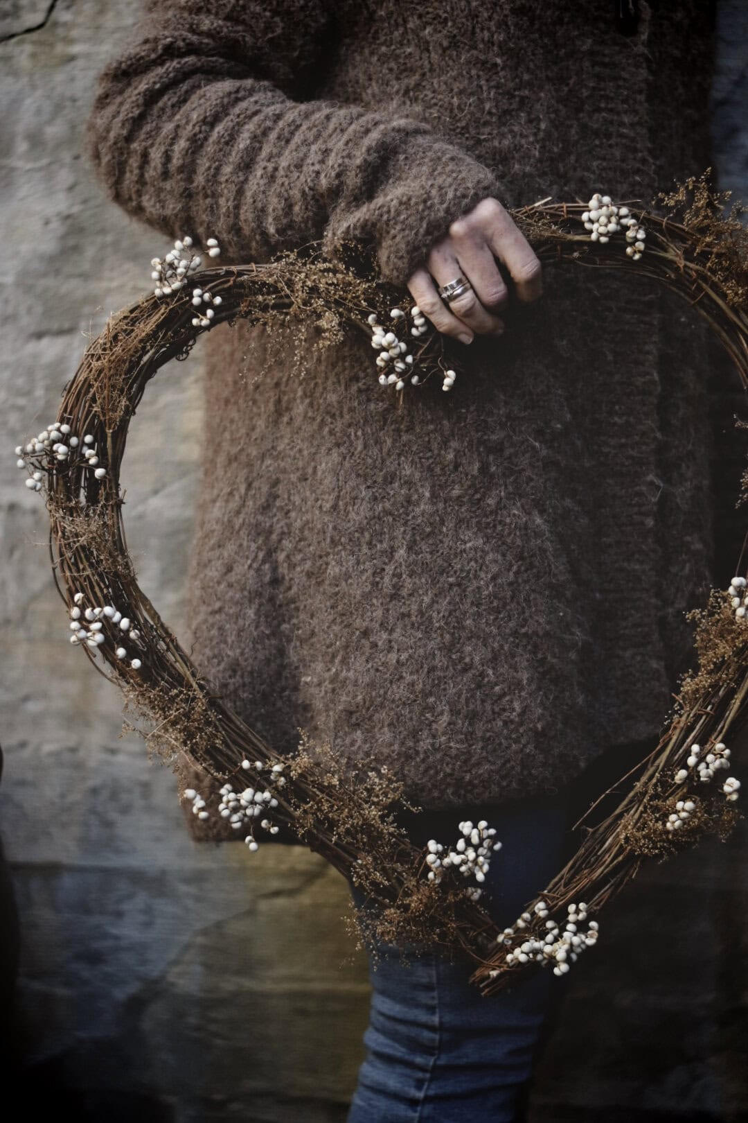 En hjertekrans gir en varm og festlig velkomst ved døren. Pynt den med lys og bånd for et personlig og ekstra koselig uttrykk.