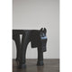 En sort skammel i tre med et vakkert, utskåret hestehode i den ene enden – et lite møbel med mye personlighet.